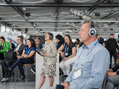 A main stage, nine topic areas (gates), large exhibition areas and several lounge areas create space for networking, professional exchange and exciting insights into players and technologies in the ICT industry. All this on three levels in Terminal 1 of Dresden International Airport. While the main stage with its high-caliber keynotes and panel discussions reflects the entire spectrum of our network, the gates represent a clear technological focus. In short pitches and talks, the gates offer insights into challenges, use cases, lessons learned, best practices and novel business models. And all this in the Silent Disco concept.